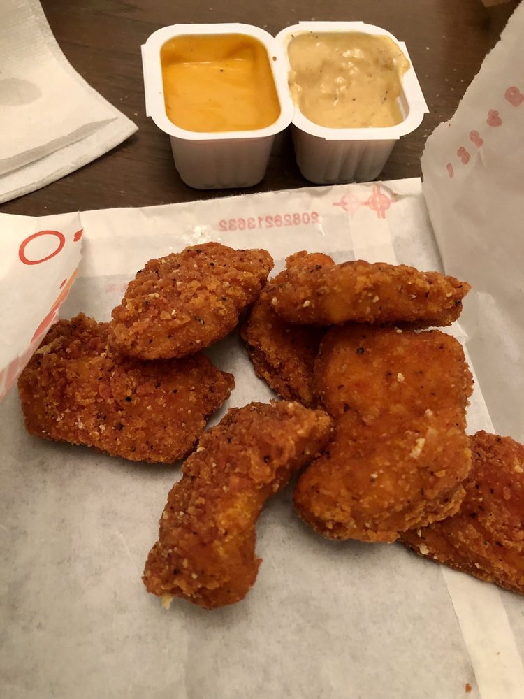 Comes with choice of up to one sauce. Breaded, crispy white meat chicken perfect for dipping in any of our delicious dipping sauces.